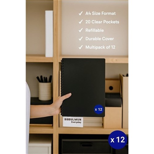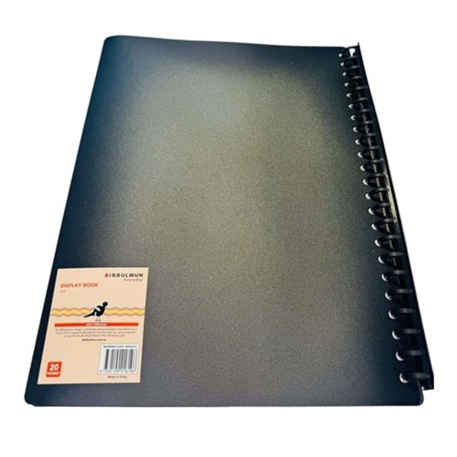 Bibbulmun Display Book A4 Refillable 20 Pocket Black Pack Of 40