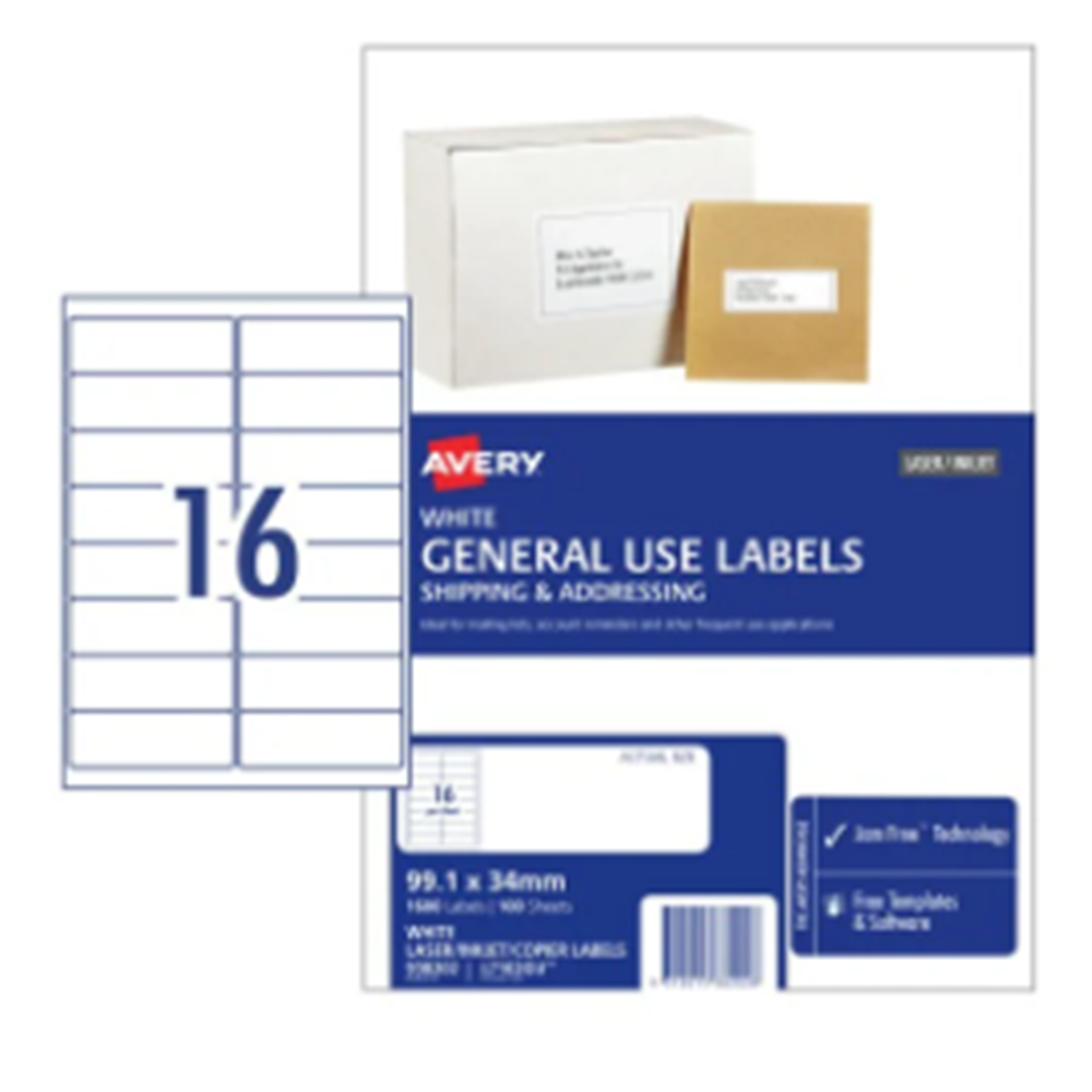 • Avery L7162 Laser Inkjet Label Copier 16 Sht 99.1x34mm White Box 100 Sheets - General Use