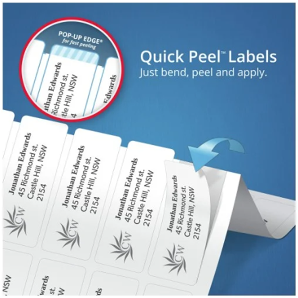 • Featuring Quick Peel for quick and easy detachment of labels from the backing sheet