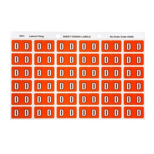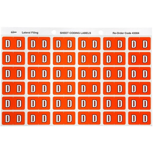 Avery Alphabet Coding Label D Side Tab 25x38mm Dark Orange Pack of 180