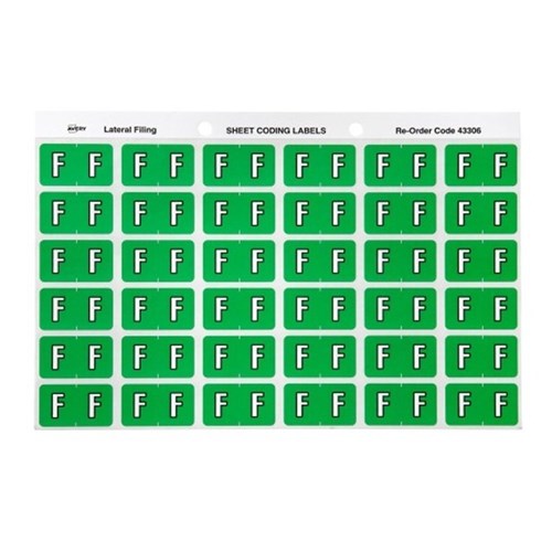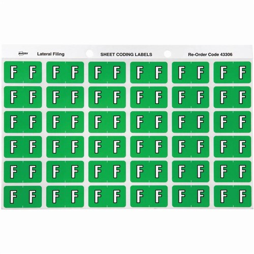 Avery Alphabet Coding Label F Side Tab 25x38mm Light Green Pack of 180