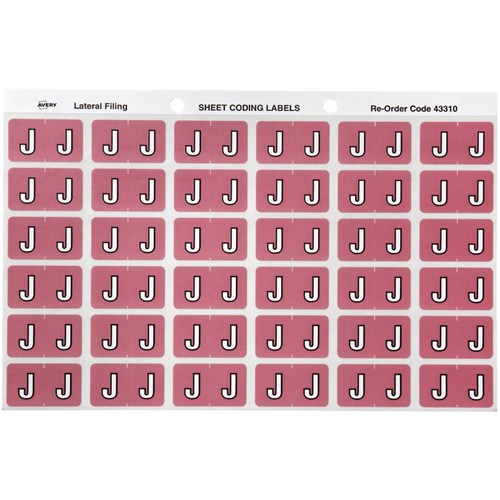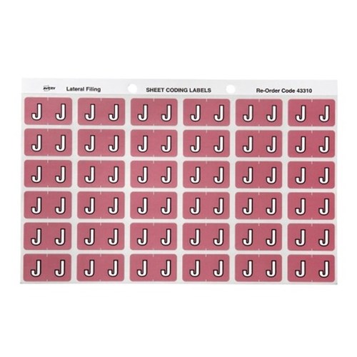 Avery Alphabet Coding Label J Side Tab 25x38mm Mauve Pack of 180