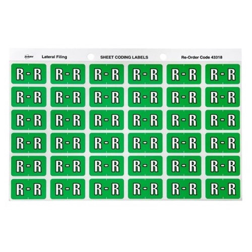 Avery Alphabet Coding Label R Side Tab 25x38mm Light Green Pack of 180