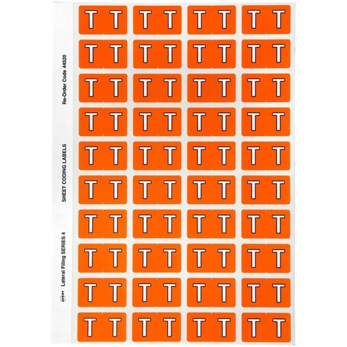 Avery Alphabet Coding Label T Side Tab 25x42mm Orange Pack of 240