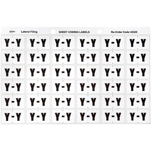 Avery Alphabet Coding Label Y Side Tab 25x38mm White Grey Pack of 180