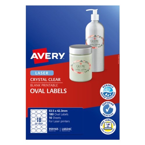 Avery Blank Printable Labels L6024C 63.5 x 42.3mm Oval Clear 18UP 180 Labels 10 Sheet