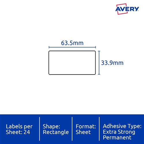 Size: 63.5x33.9mm 240 labels, 10 sheets. 24 labels per sheet (24UP).