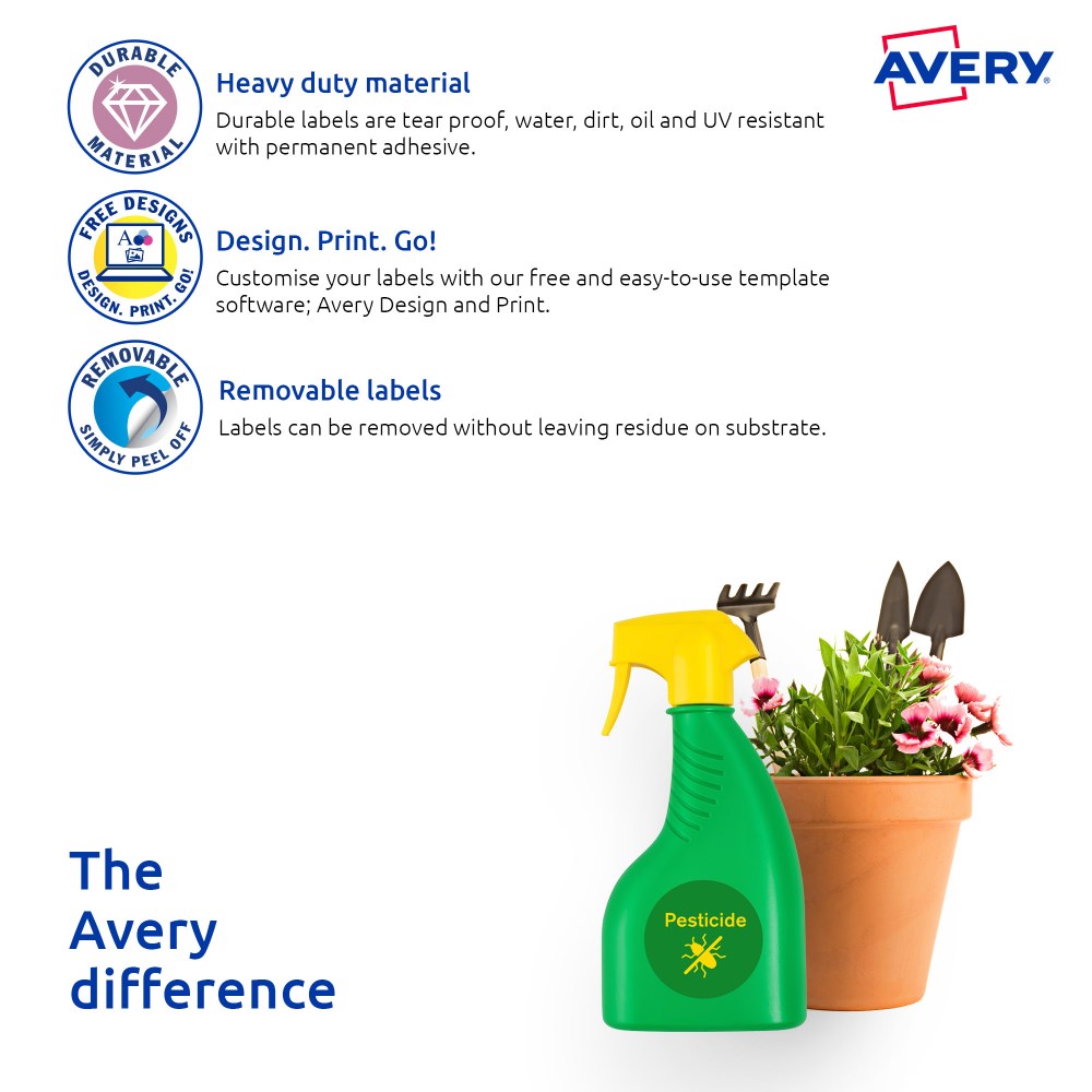 Customise your labels with Avery Design and Print, available at averyproducts.com.au/print.