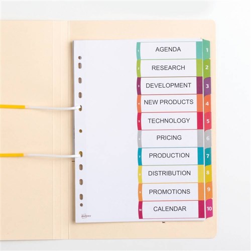 Avery L7411-10 Customisable Dividers A4 1-10 Index Tabs Bright Assorted
