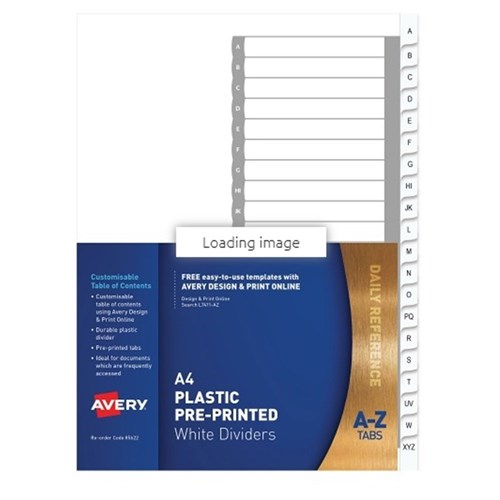 Avery L7411-Az Dividers Plastic A4 A-Z Index Tabs White