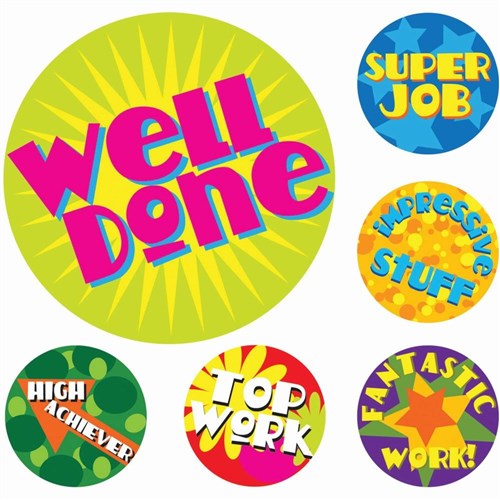 Avery Merit Stickers Caption 1 Round 22mm 5 Designs Assorted Colours 300 Sticker