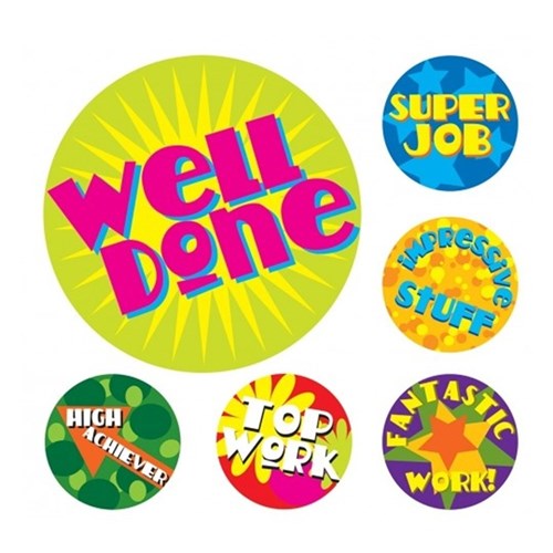 Avery Merit Stickers Caption 2 Round 22mm 5 Designs Assorted Colours 300 Sticker