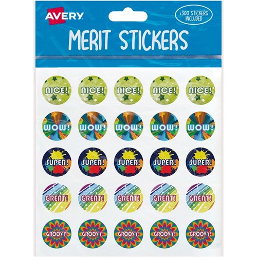 Avery Merit Stickers Caption 1 Round 22mm 5 Designs Assorted Colours 300 Sticker