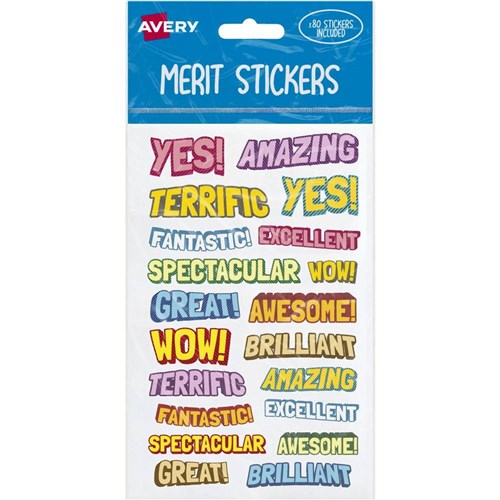 Avery Merit Stickers Comic 20 Designs Assorted Colours 80 Stickers
