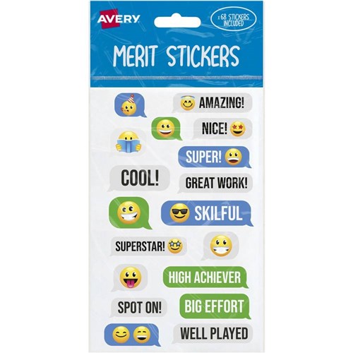 Avery Merit Stickers Messaging Emoji 13 Designs Assorted Colours 68 Stickers