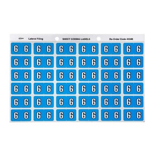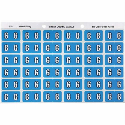 Avery Numeric Coding Label 6 Side Tab 25x38mm Blue Pack of 180