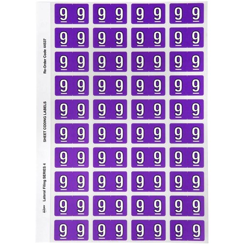 Avery Numeric Coding Label 9 Side Tab 25x42mm Purple Pack of 240