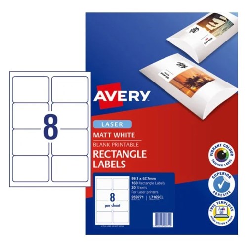 Avery Printable Labels L7165CL 99.1 x 67.7mm Rectangle Photo Matte White 8UP 160