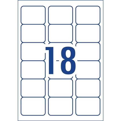 Size: 63.5x46.6mm 1800 labels, 100 sheets. 18 labels per sheet (18UP).