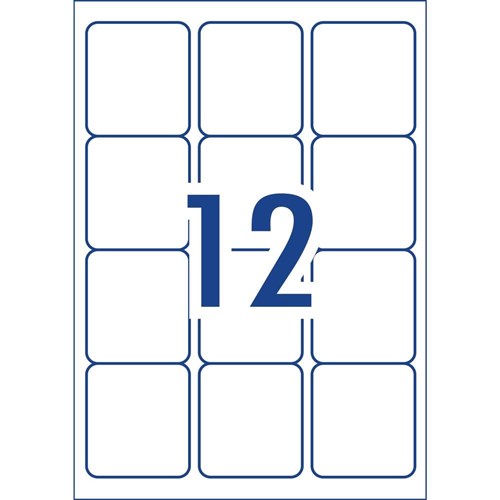 Size: 63.5x72mm 1200 labels, 100 sheets. 12 labels per sheet (12UP).