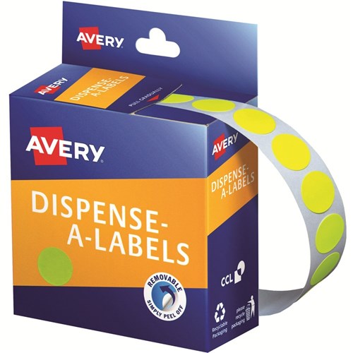 Avery Removable Dispenser Labels 24mm Round Fluoro Yellow Pack Of 350
