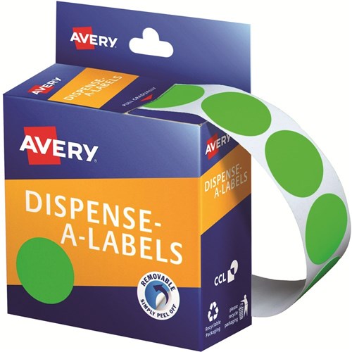 Avery Removable Dispenser Labels 24mm Round Green Pack Of 500