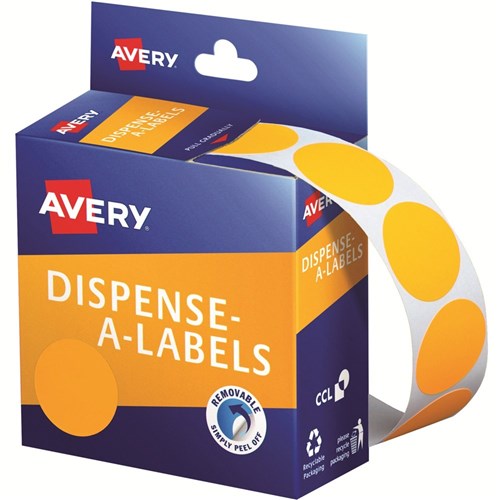 Avery Removable Dispenser Labels 24mm Round Orange Pack Of 500