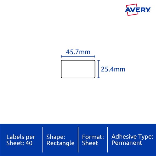 Size: 45.7x25.4mm 400 labels, 10 sheets. 40 labels per sheet (40UP).