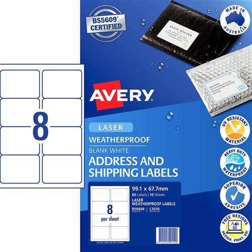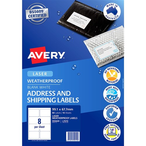 Avery Weatherproof Address & Shipping Laser White L7070 99.1x67.7mm 8UP 80 Label