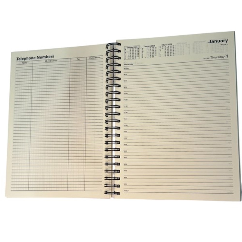 • Wiro-bound for ease of use. Lays flat for comfortable writing and quick page turns.