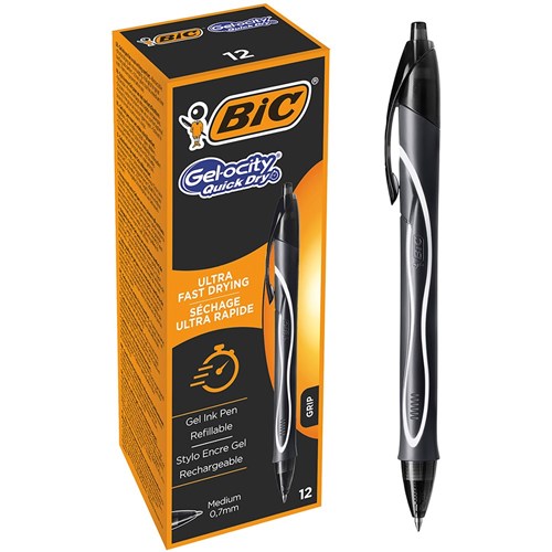 Bic Gelocity Gel Pen Retractable Medium 0.7mm Black Pack of 12