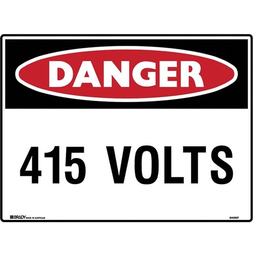 Brady Danger Sign 415 Volts 600W x 450mmH Polypropylene White/Red/Black