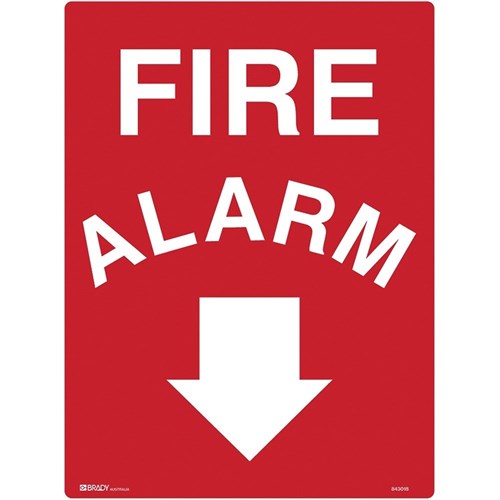 Brady Fire Sign Fire Alarm With Arrow Down 450W x 600mmH Polypropylene White/Red