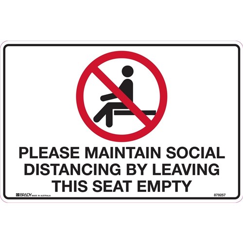 Wording: Please Maintain Social Distancing By Leaving This Seat Empty. Colour: White, red and black.