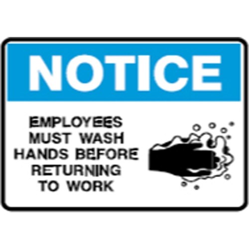 Wording: Notice Sign Wash Hands Before Returning To Work.