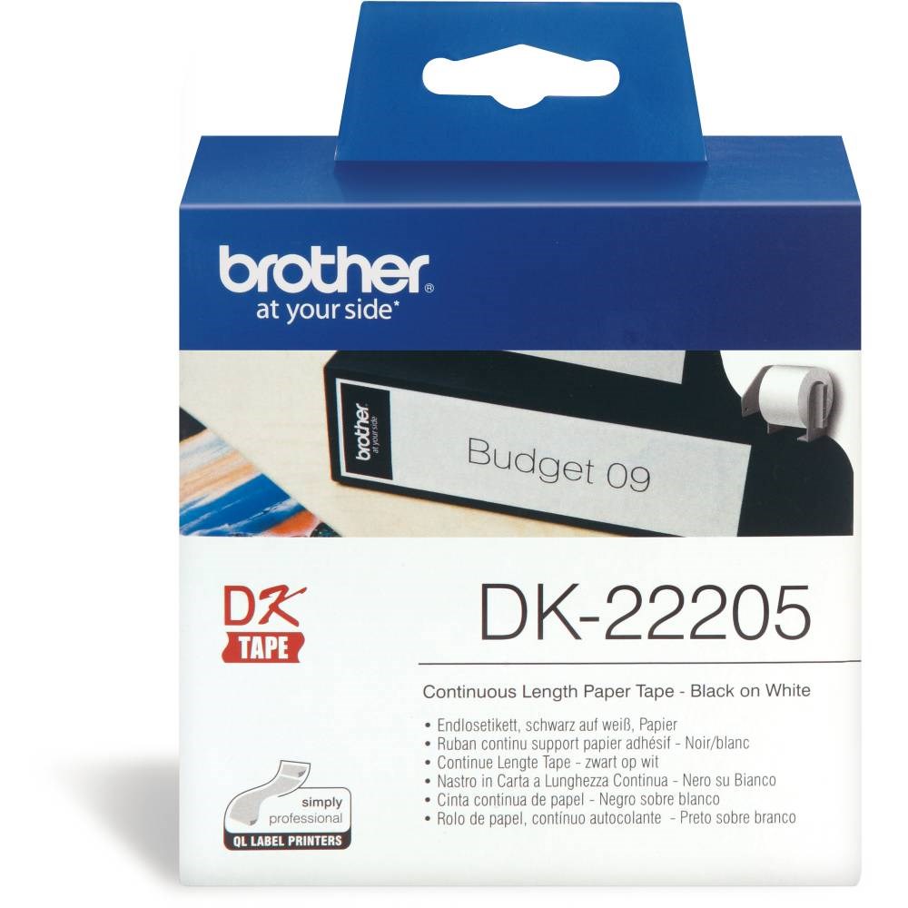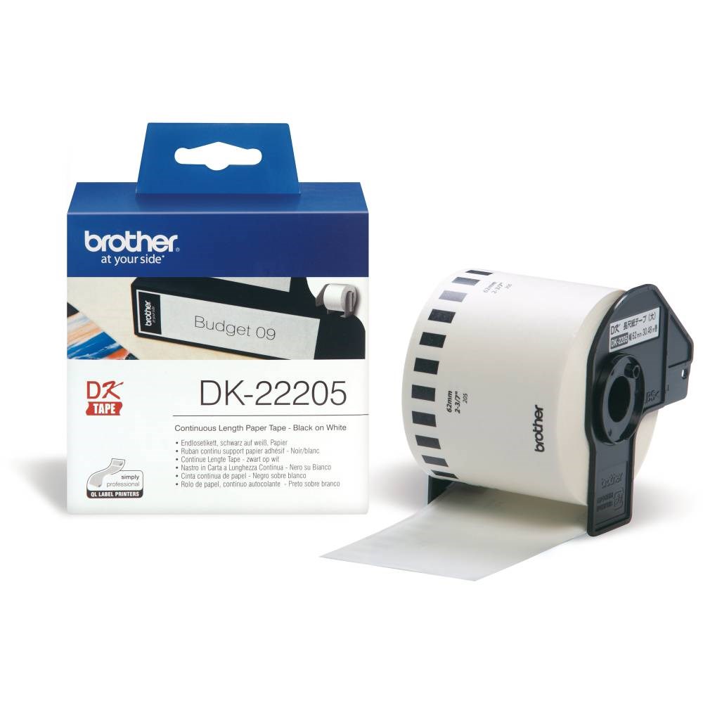 Brother DK-22205 Label Rolls 62mmx30.48m Black on White Adhesive Paper