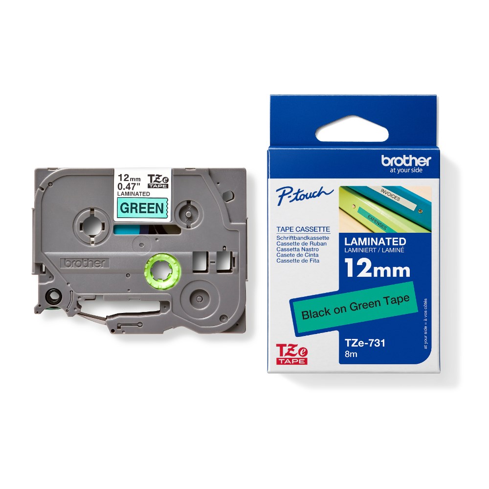 Brother TZE-731 P-Touch Tape 12mmx8m Black on Green