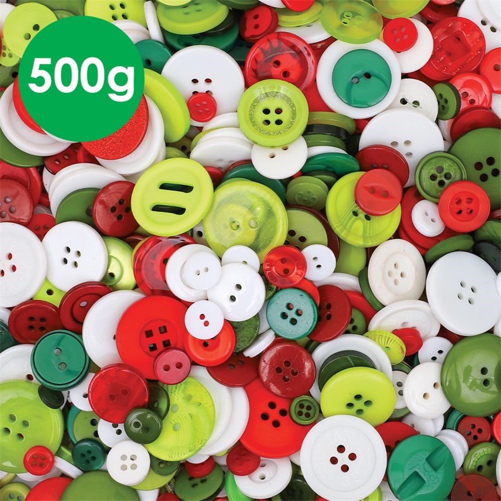 Over 500 plastic buttons in assorted sizes, shapes and Christmas colours