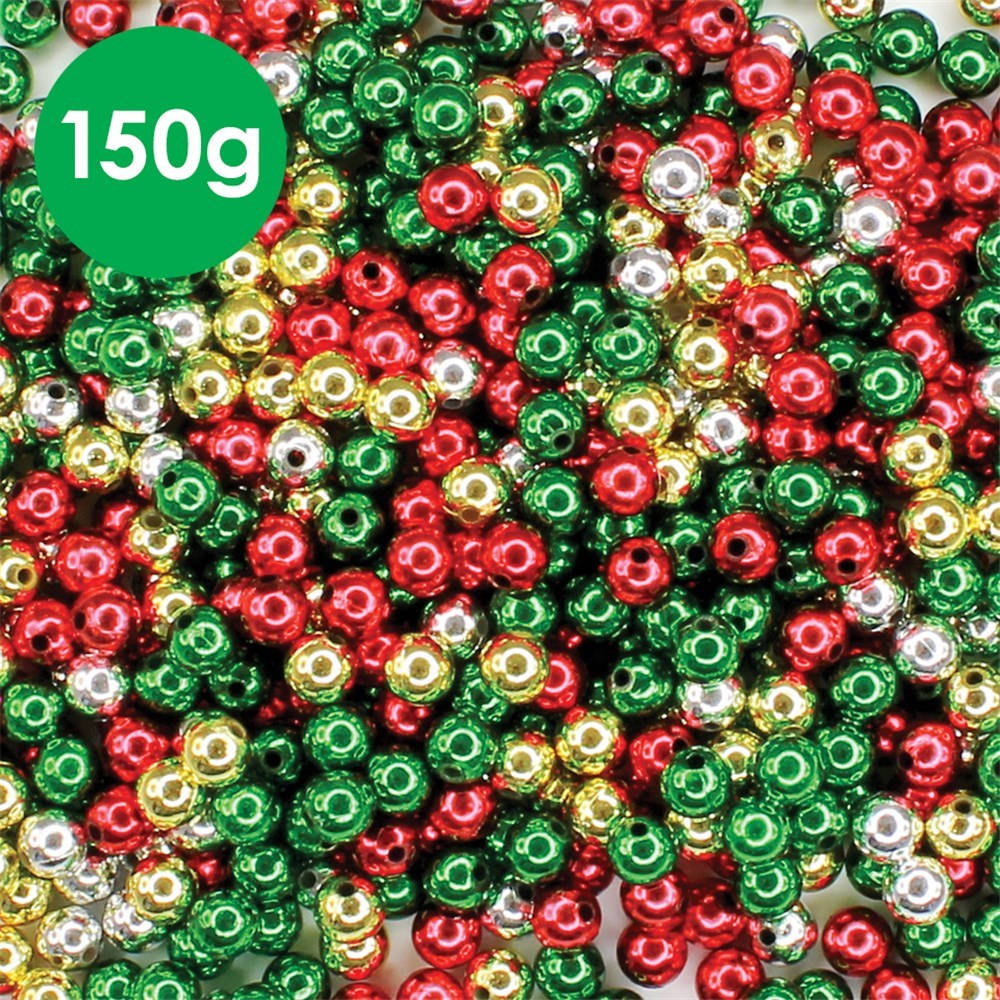 Approx 580 pearl beads in assorted metallic Christmas colours