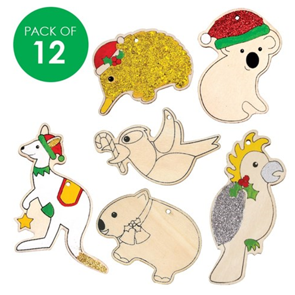 CleverPatch Australian Animal Printed Wooden Ornaments Pack of 12