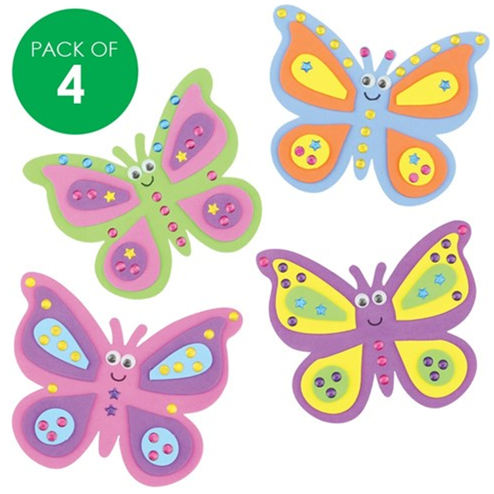 Pack includes all components required to create and decorate 4 Butterfly Jewel Magnets