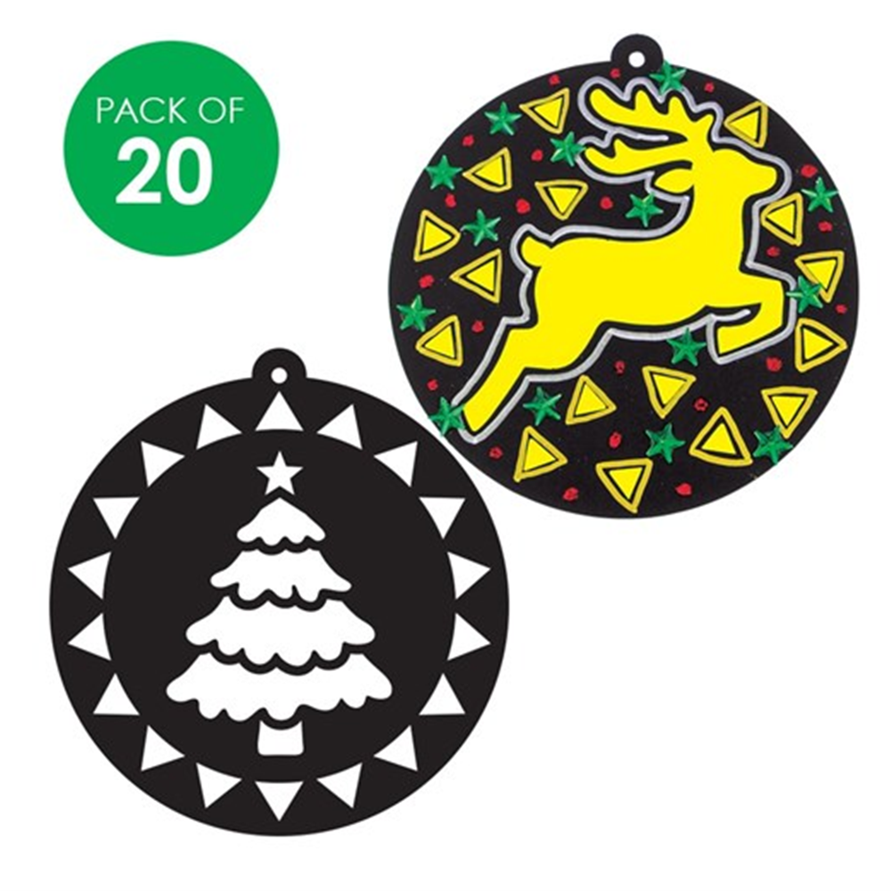 CleverPatch Cardboard Christmas Stained Glass Cutouts Black Pack of 20