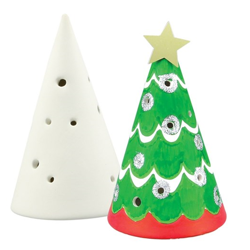 Unglazed ceramic Christmas tree tealight holder