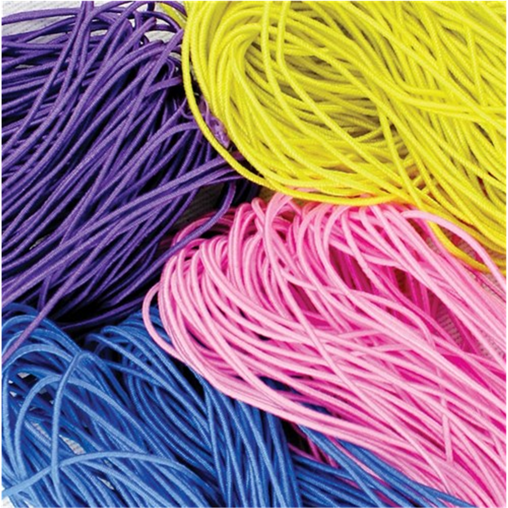 Includes 1 x reel of yellow, blue, purple and pink elastic