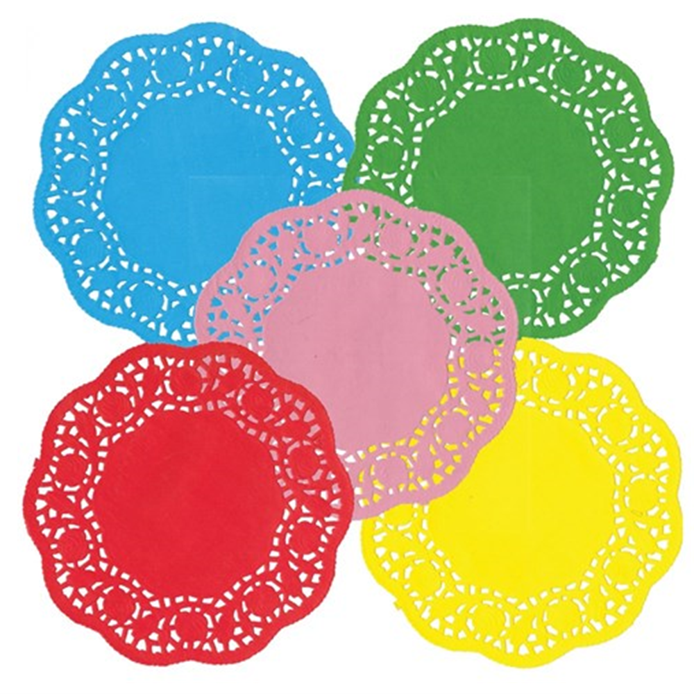 120 coloured doilies