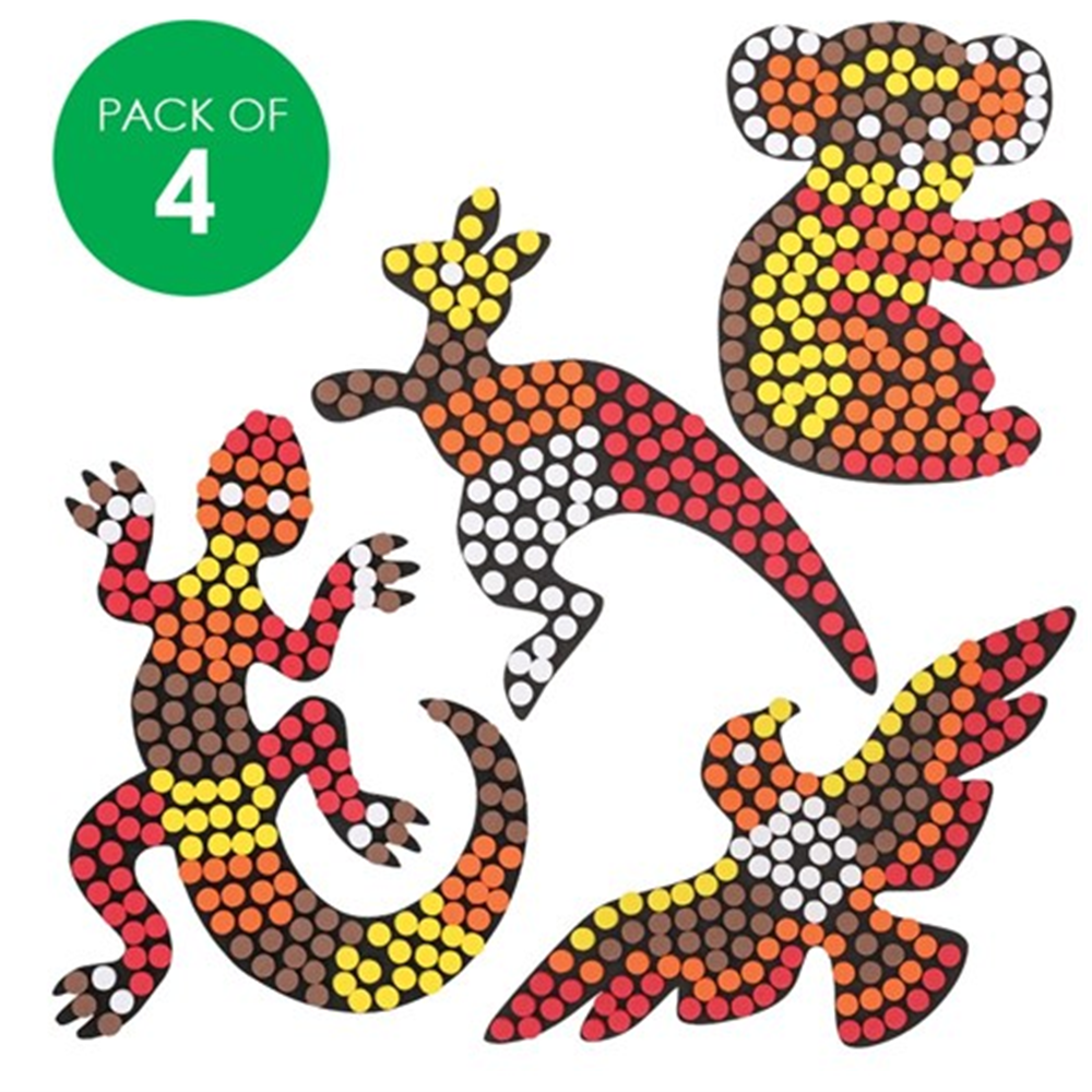 Pack includes all components required to create and decorate 4 Foam Australian Animal Mosaic designs.
