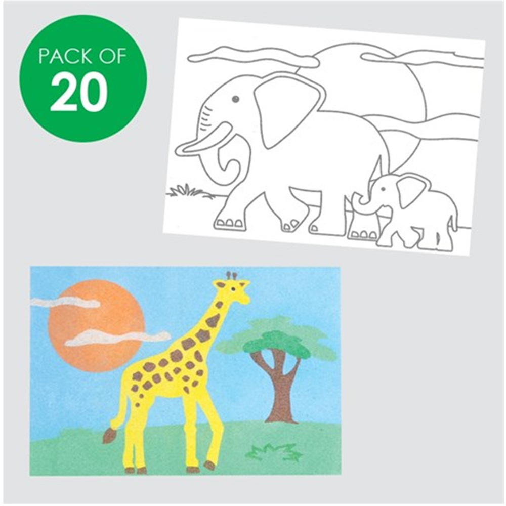 CleverPatch Safari Animals Sand Art Sheets Pack of 20
