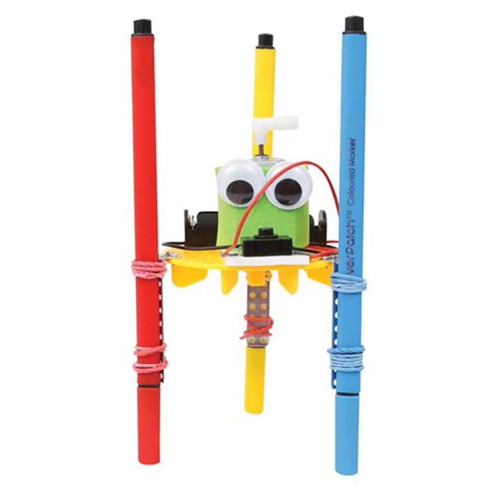 Build your robot and watch it create unique artworks as the vibrations from the motor make your robot walk.