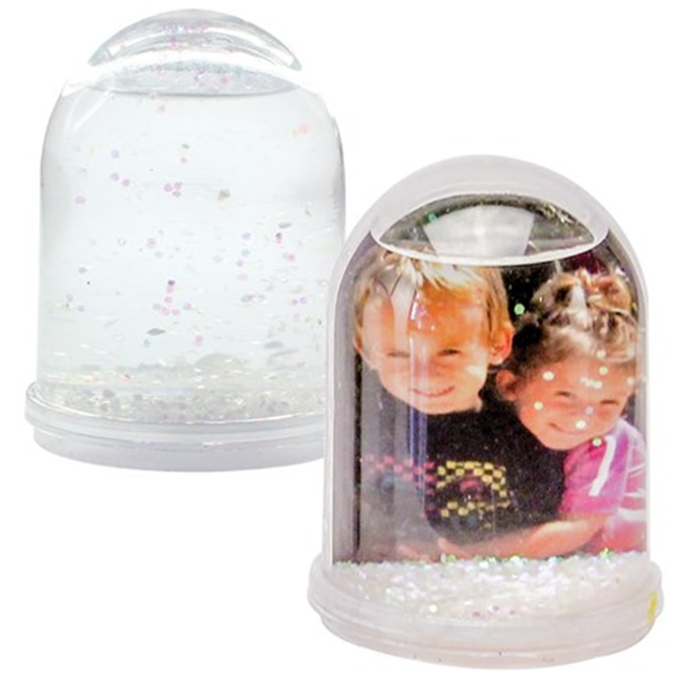 Create your own mini snow globe by inserting a design or photograph into this glittery snowstorm