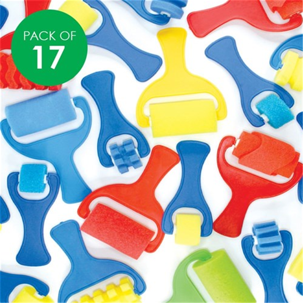 Assortment of sponge rollers with varying patterns and unusual designs.